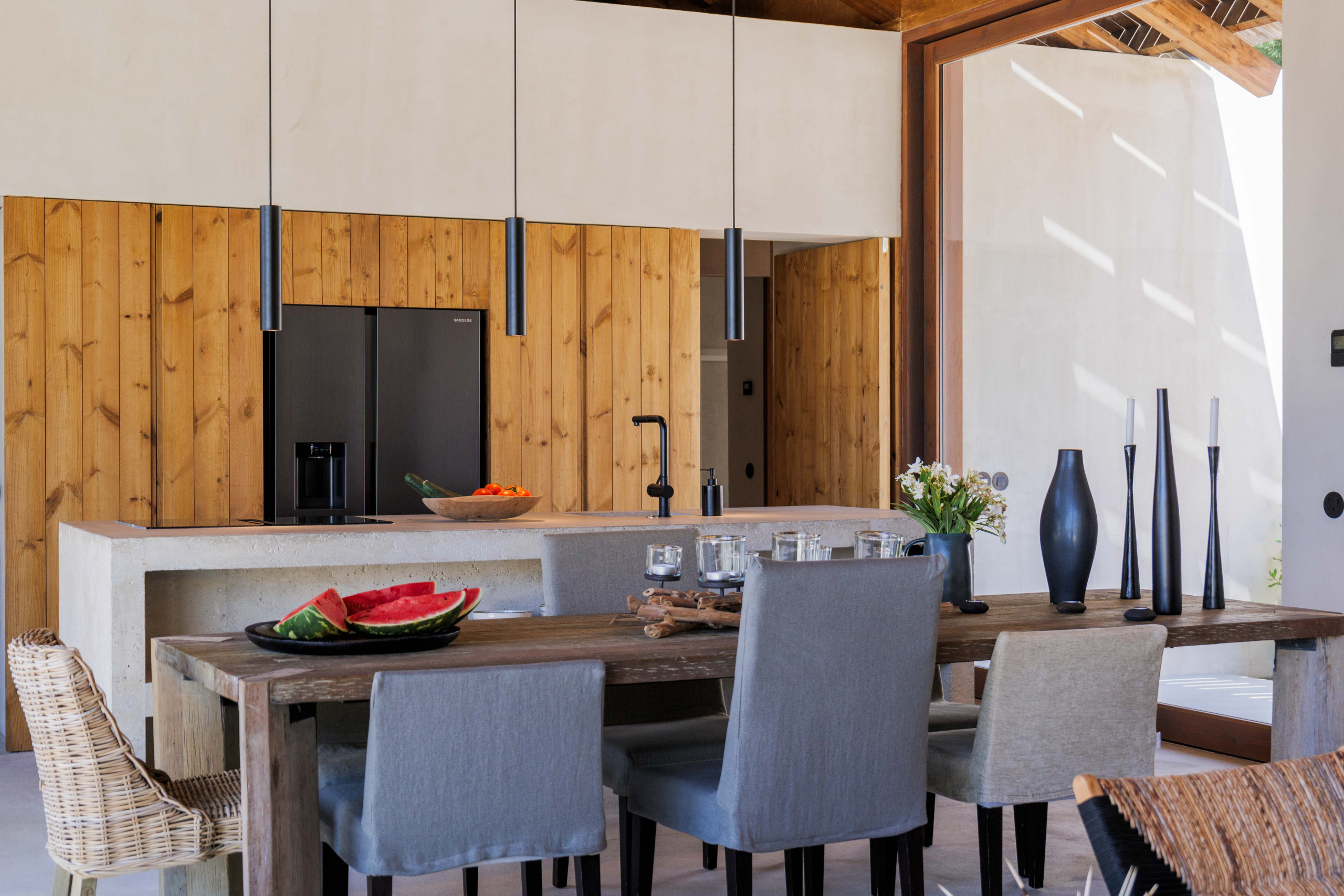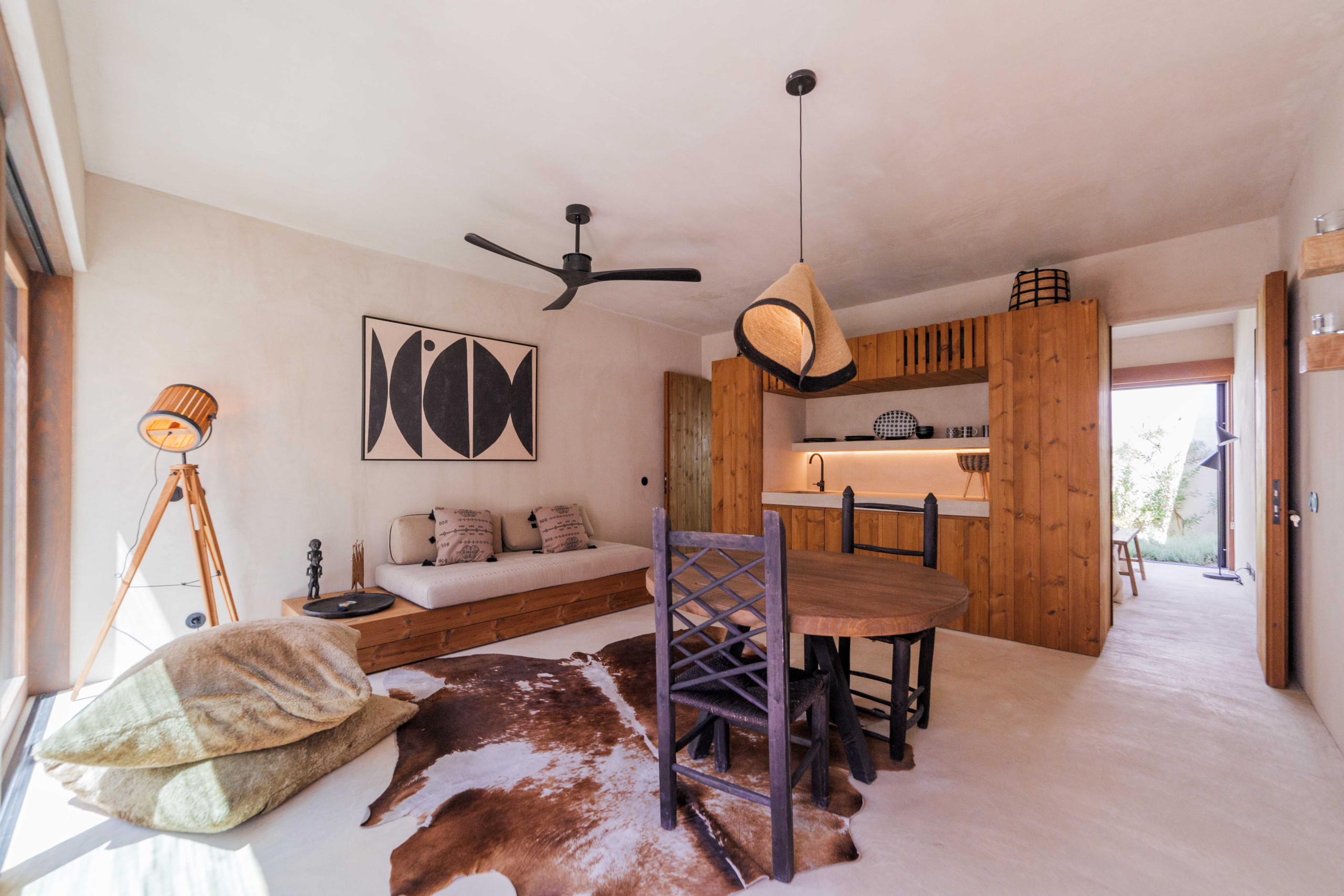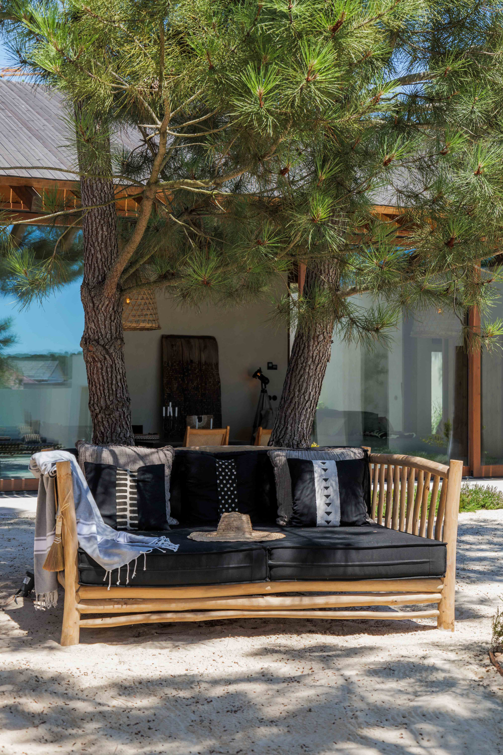 Beyond the exquisite interiors, Villa Papaya’s outdoor spaces are designed to immerse you in the serene beauty of Comporta’s landscape. The property is surrounded by towering pines and lush greenery, creating a tranquil haven where you can unwind. At the heart of this retreat is a refreshing swimming pool, inviting you to bask in the sun, cool off with a swim, or simply relax with a book in hand.