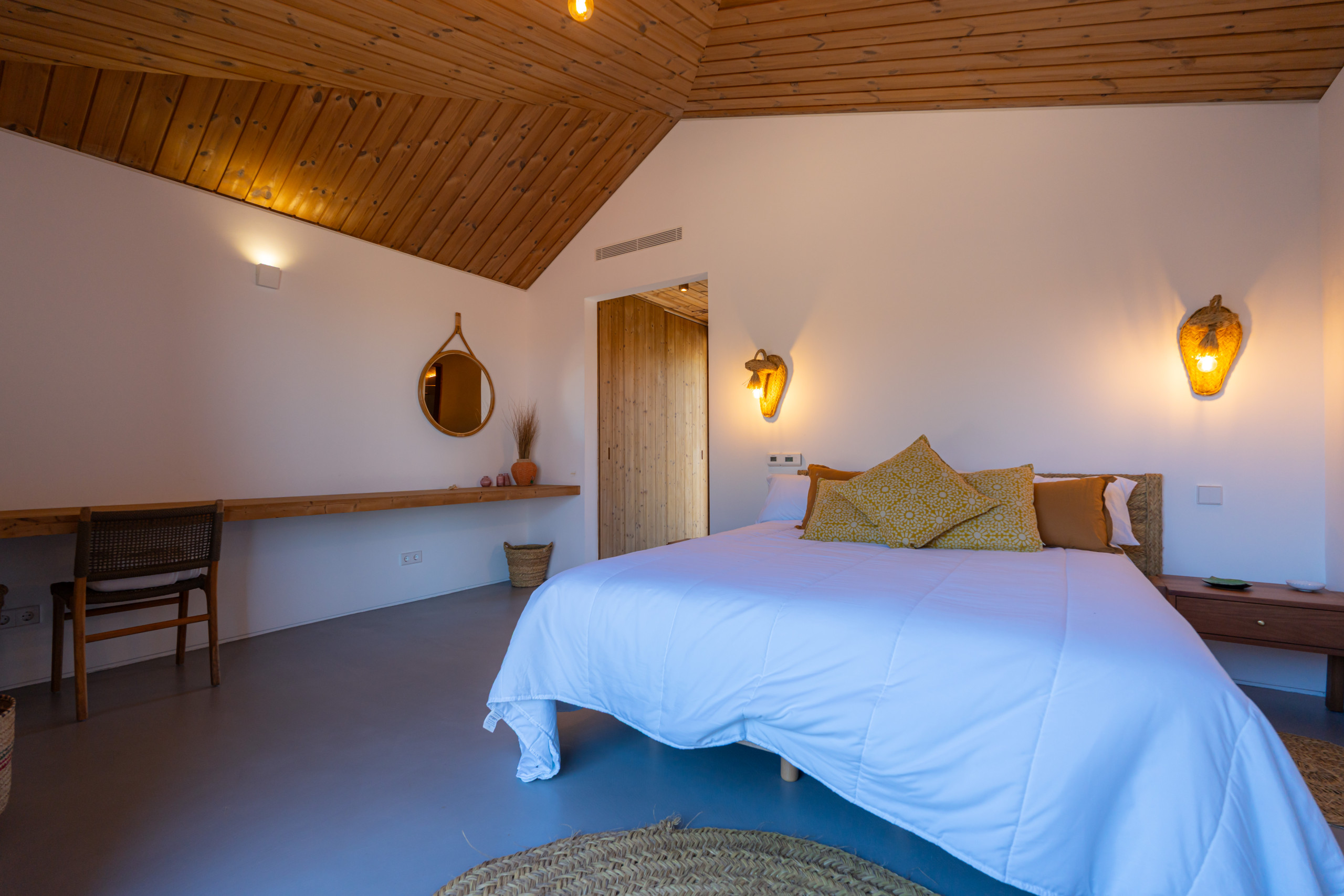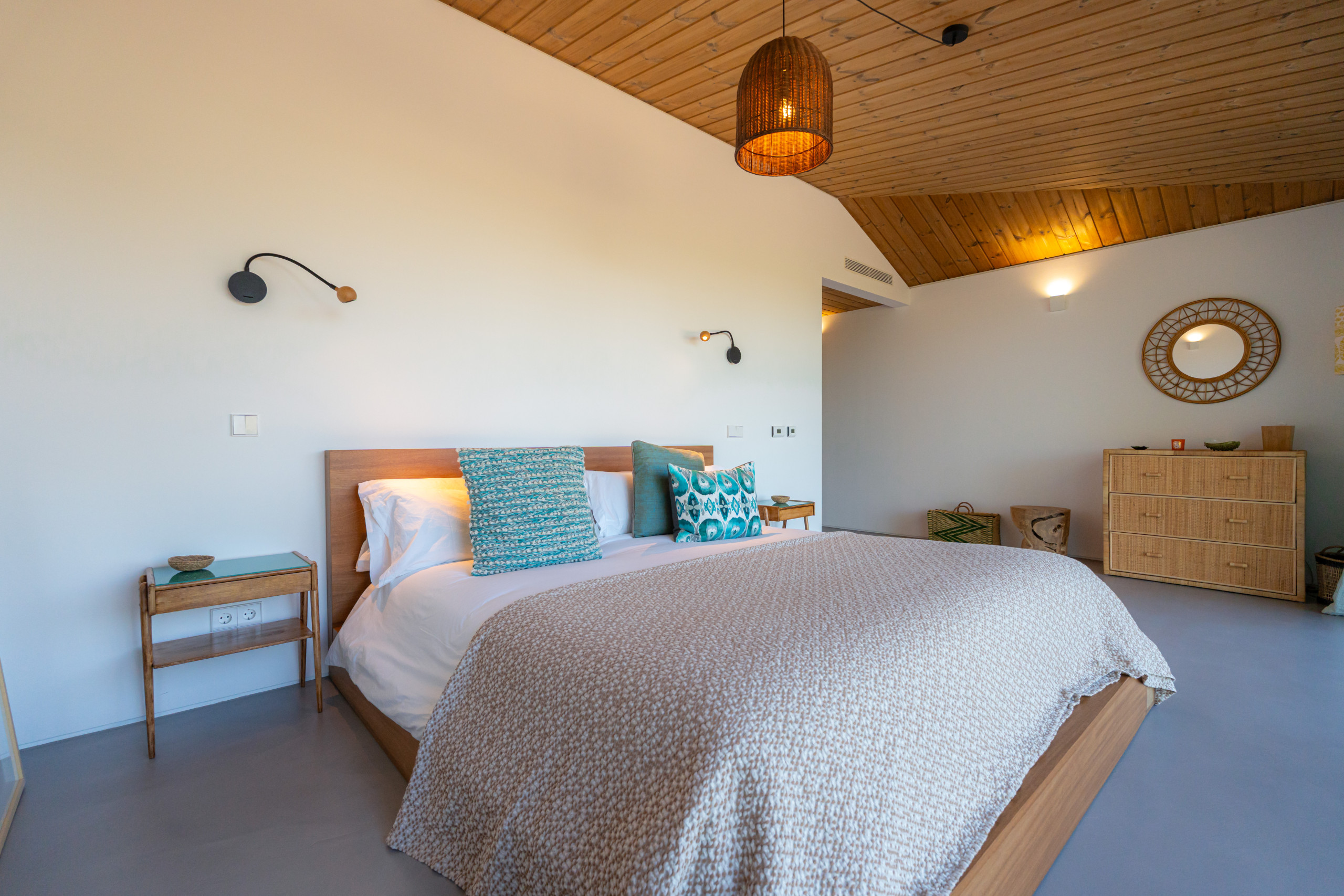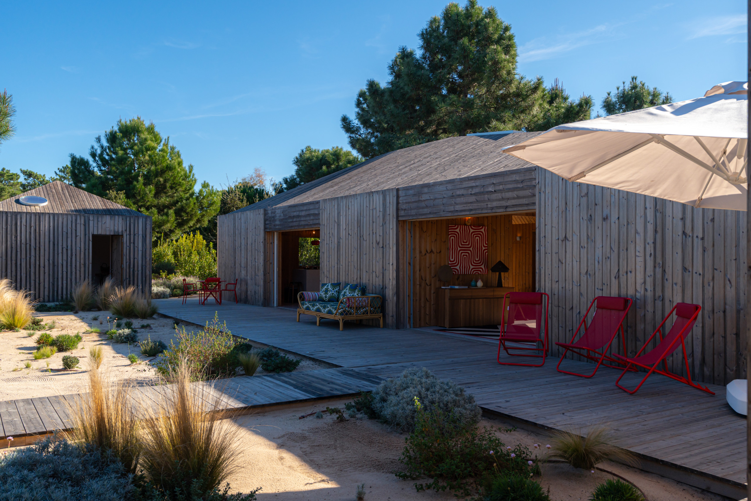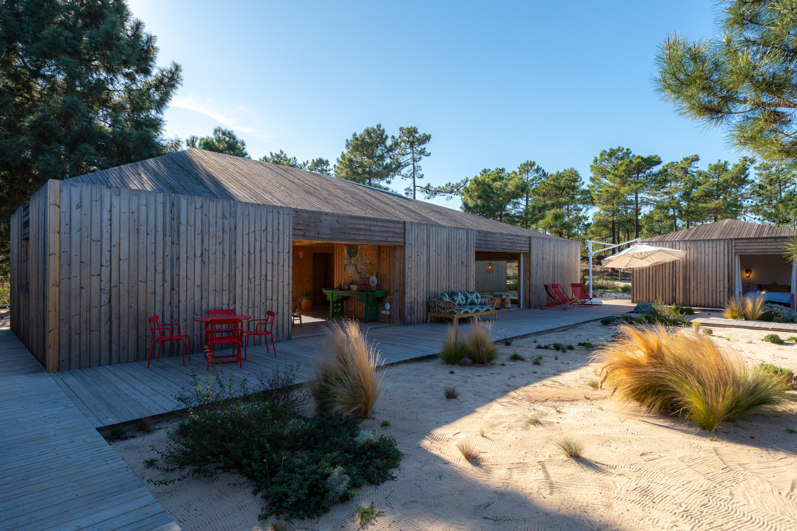 Villa Cypress is a stunning newly built retreat set within an exclusive gated community on the edge of Carvalhal village, just 2 minutes by car from Carvalhal Beach and 3 minutes further from Pego Beach. Designed for privacy and effortless coastal living, the villa is arranged across several elegant cabanas surrounding a peaceful sandy courtyard.