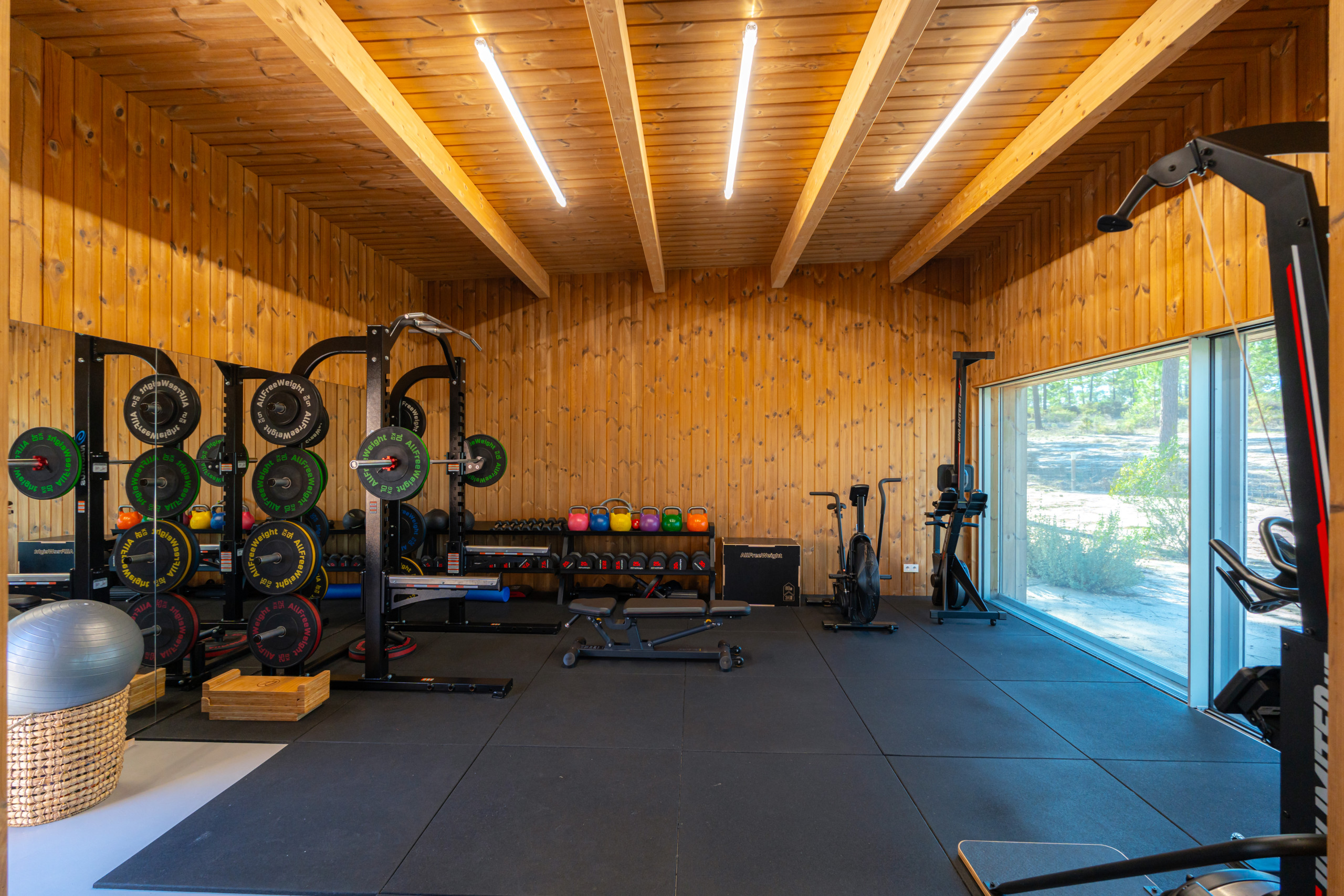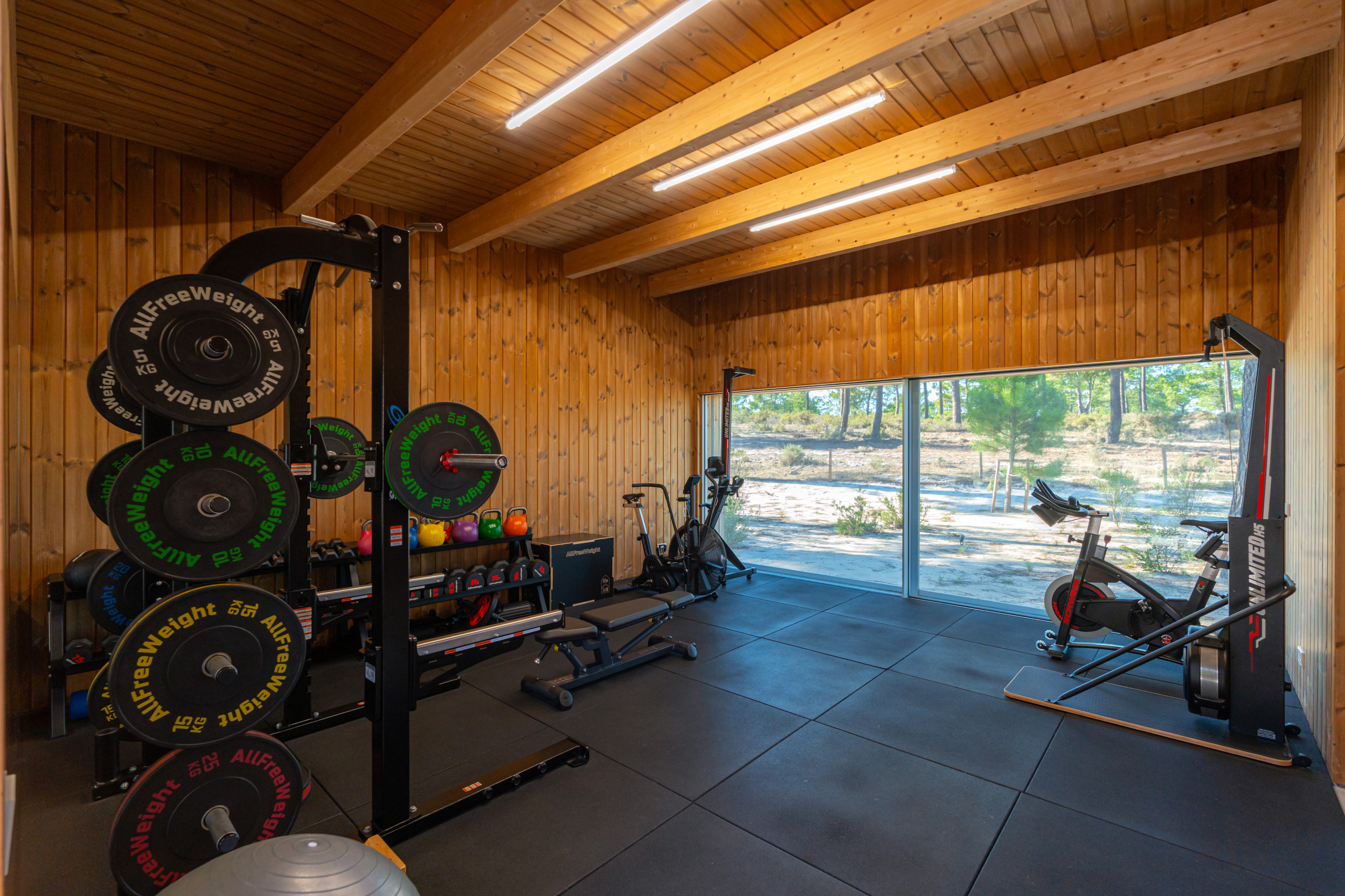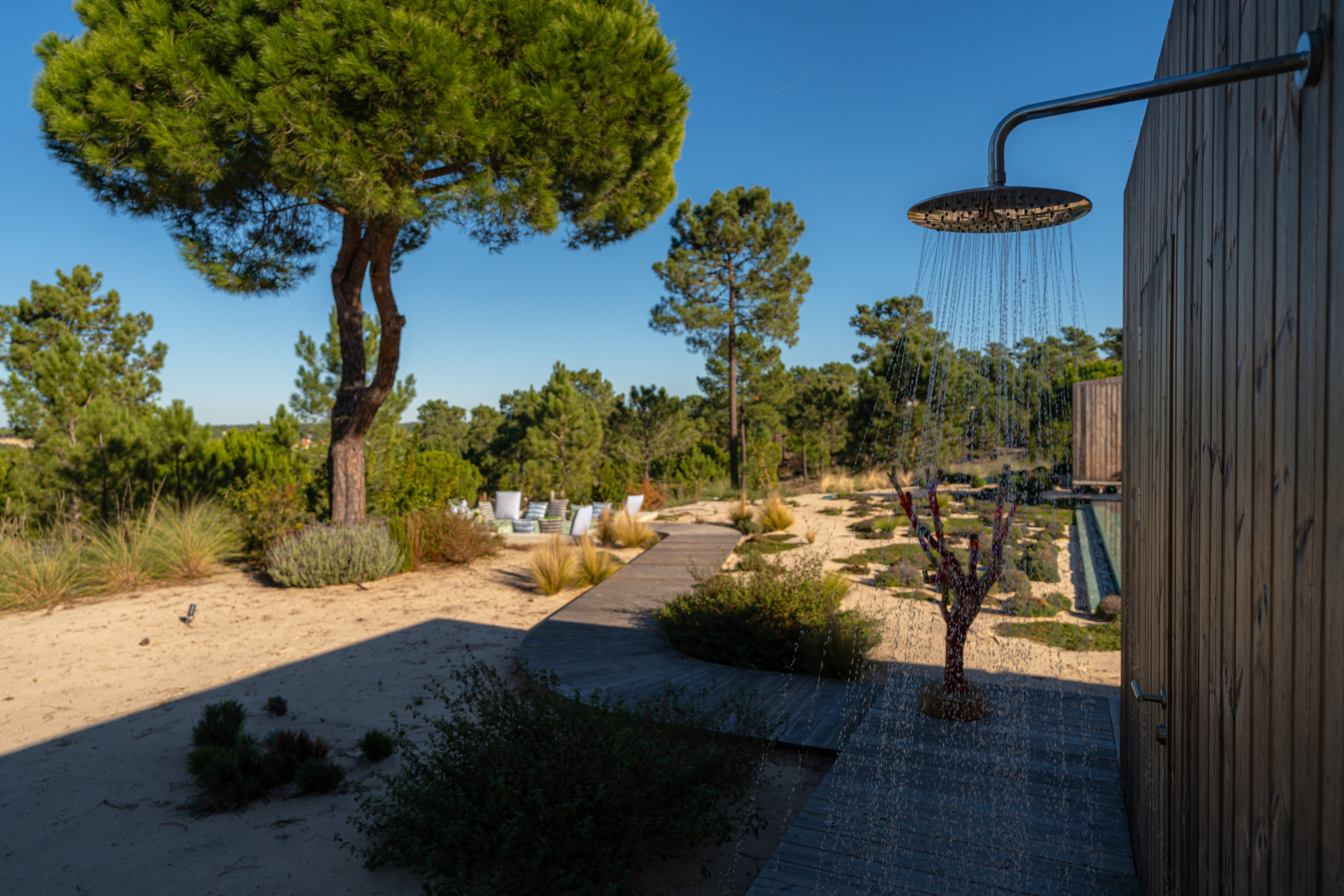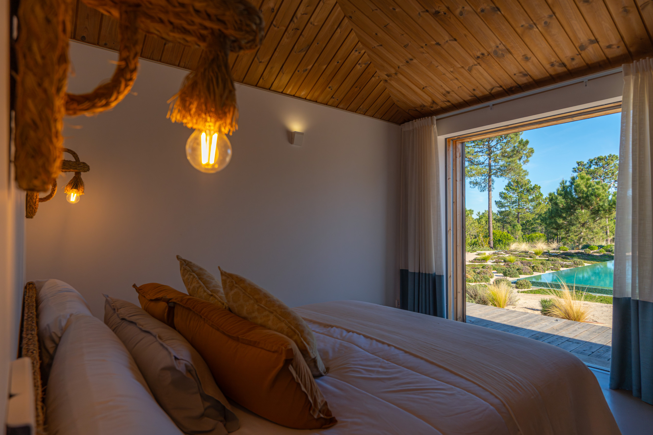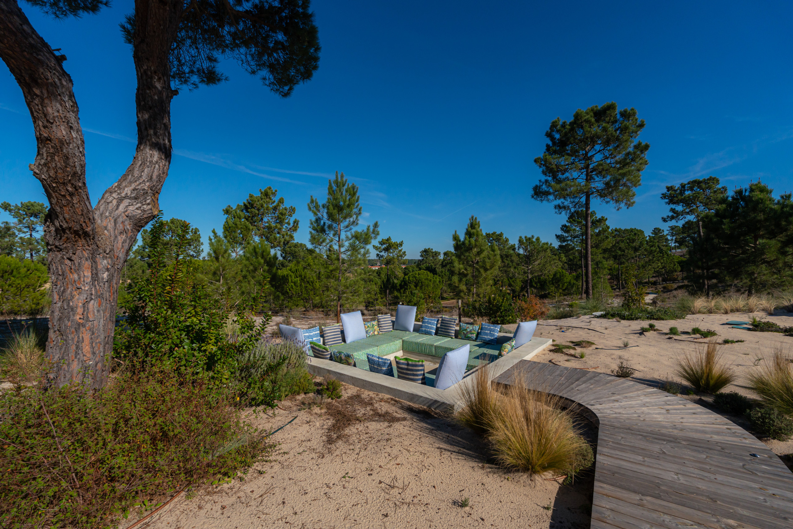 For wellness and relaxation, Villa Cypress also includes a fully equipped gym with sauna and an ice tub. Outdoors, the beautifully positioned pool area is surrounded by nature with great lounging spaces, making it an ideal choice for a relaxed family holiday in Comporta.
