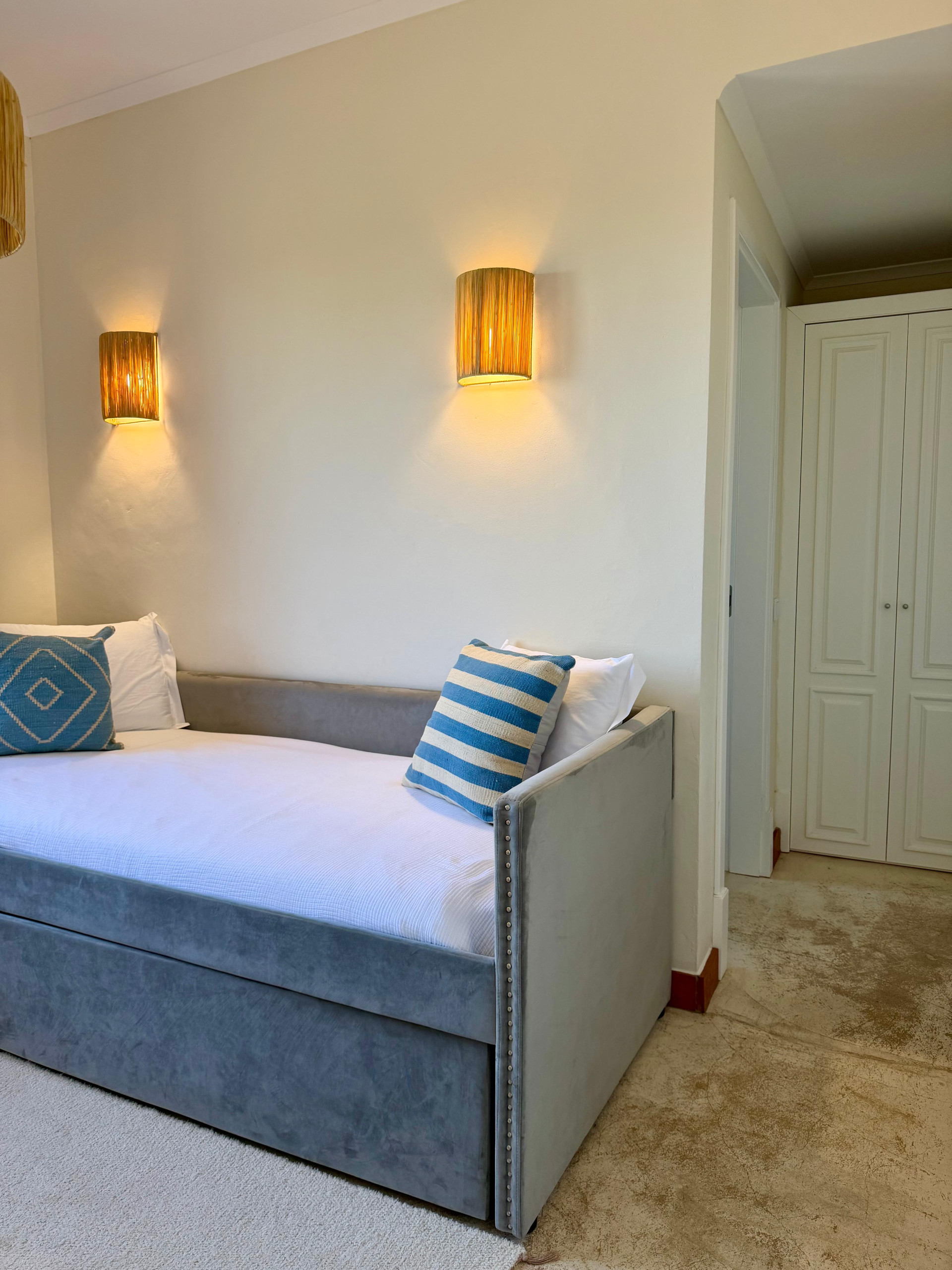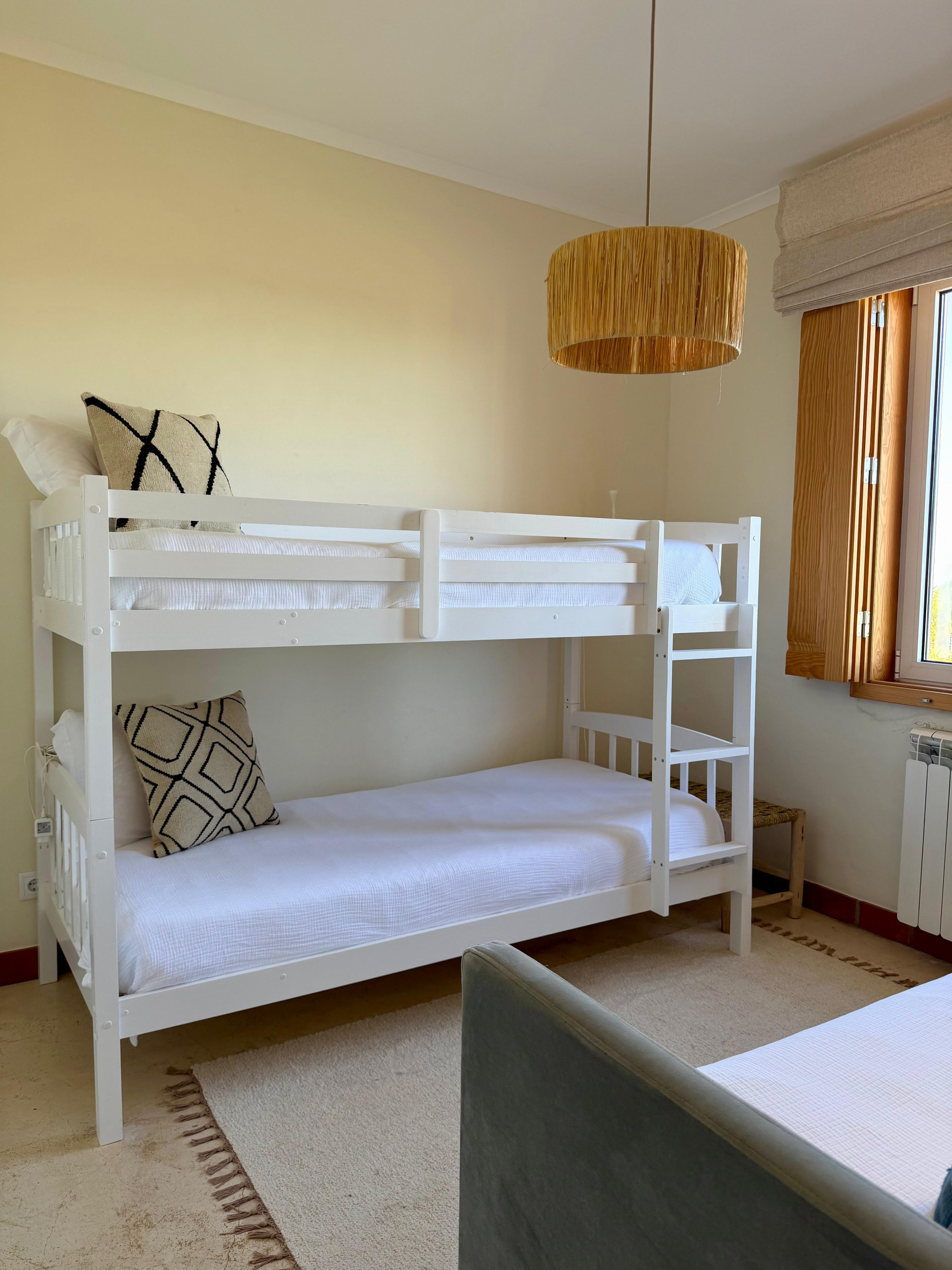 The bedrooms are designed for both comfort and flexibility, including king bedrooms, twin rooms and a family-style room with bunk beds and additional singles, making the villa particularly well suited for families and groups.
