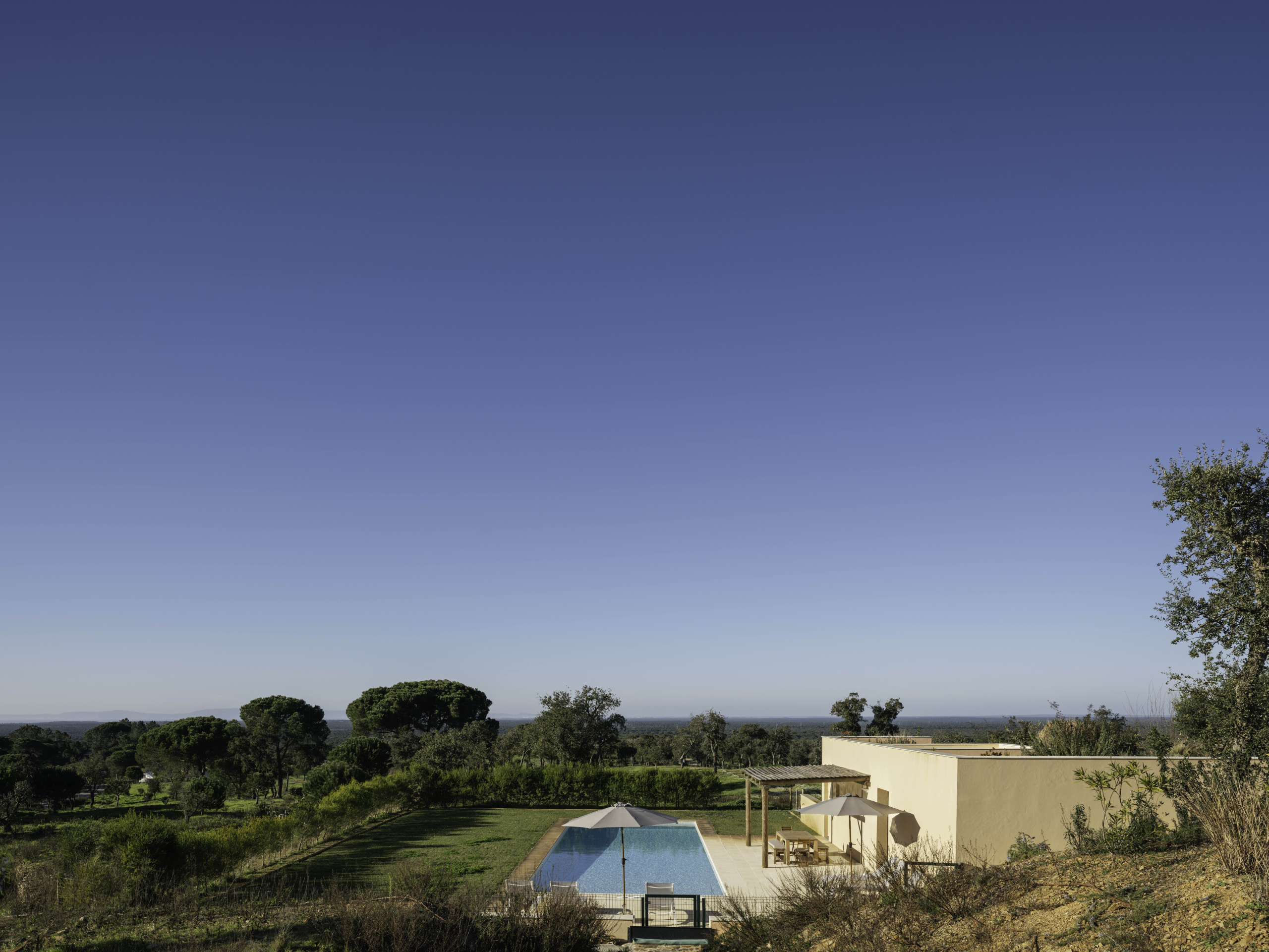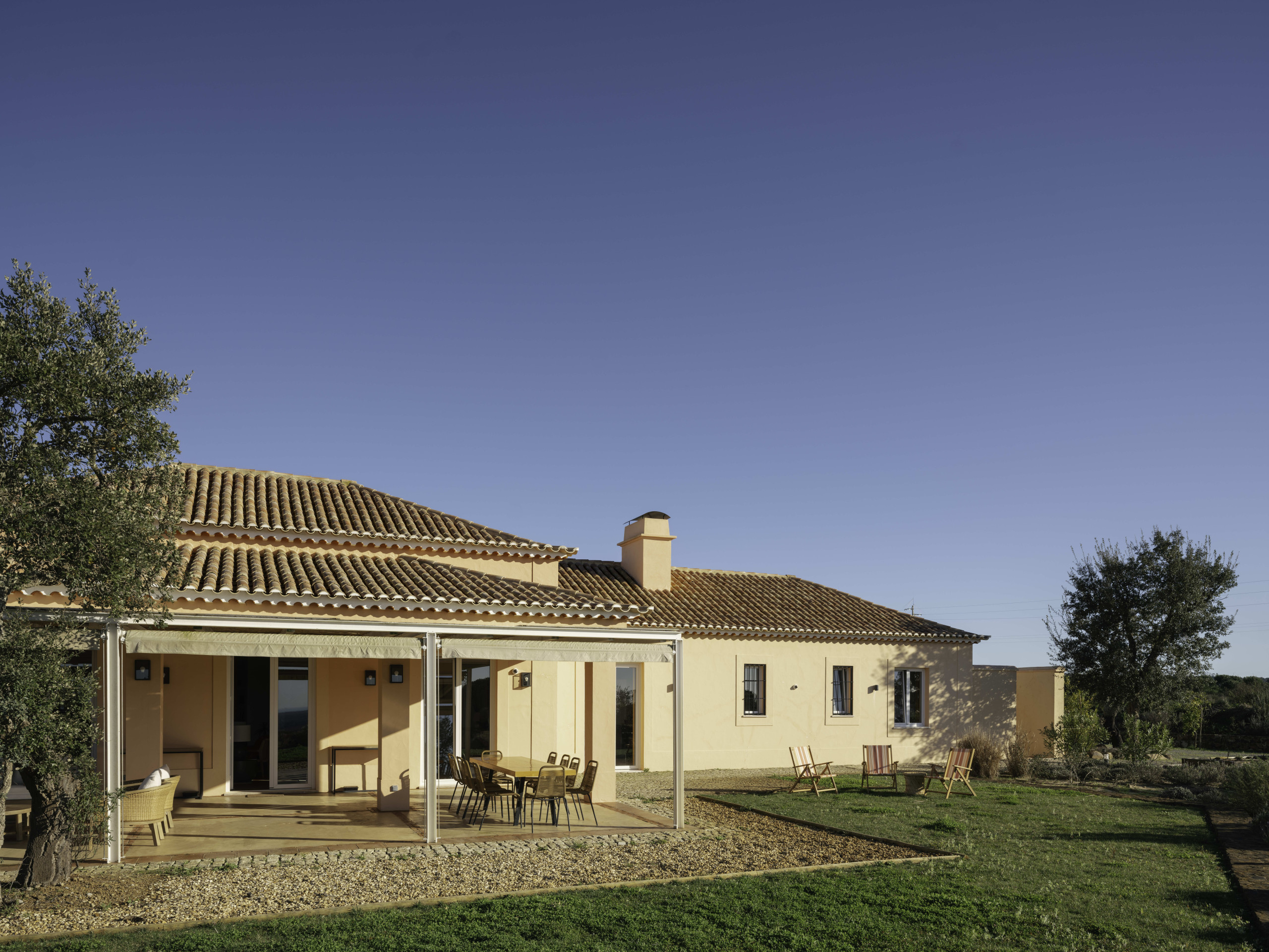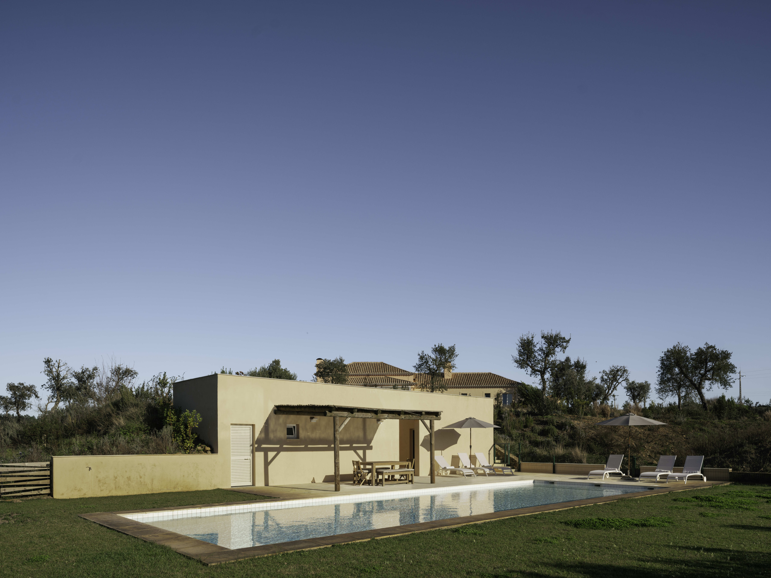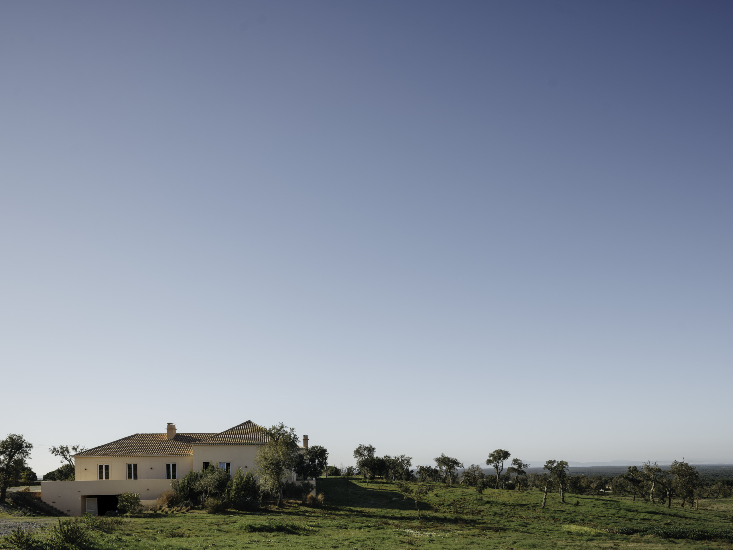 Villa Olive is a spacious countryside retreat set in the peaceful landscape near Melides, surrounded by rolling fields, cork oaks and olive trees. Set on a private 19-acre estate, the villa offers complete privacy and wide open views across the Alentejo countryside while still being within easy reach of Melides village and the nearby beaches.