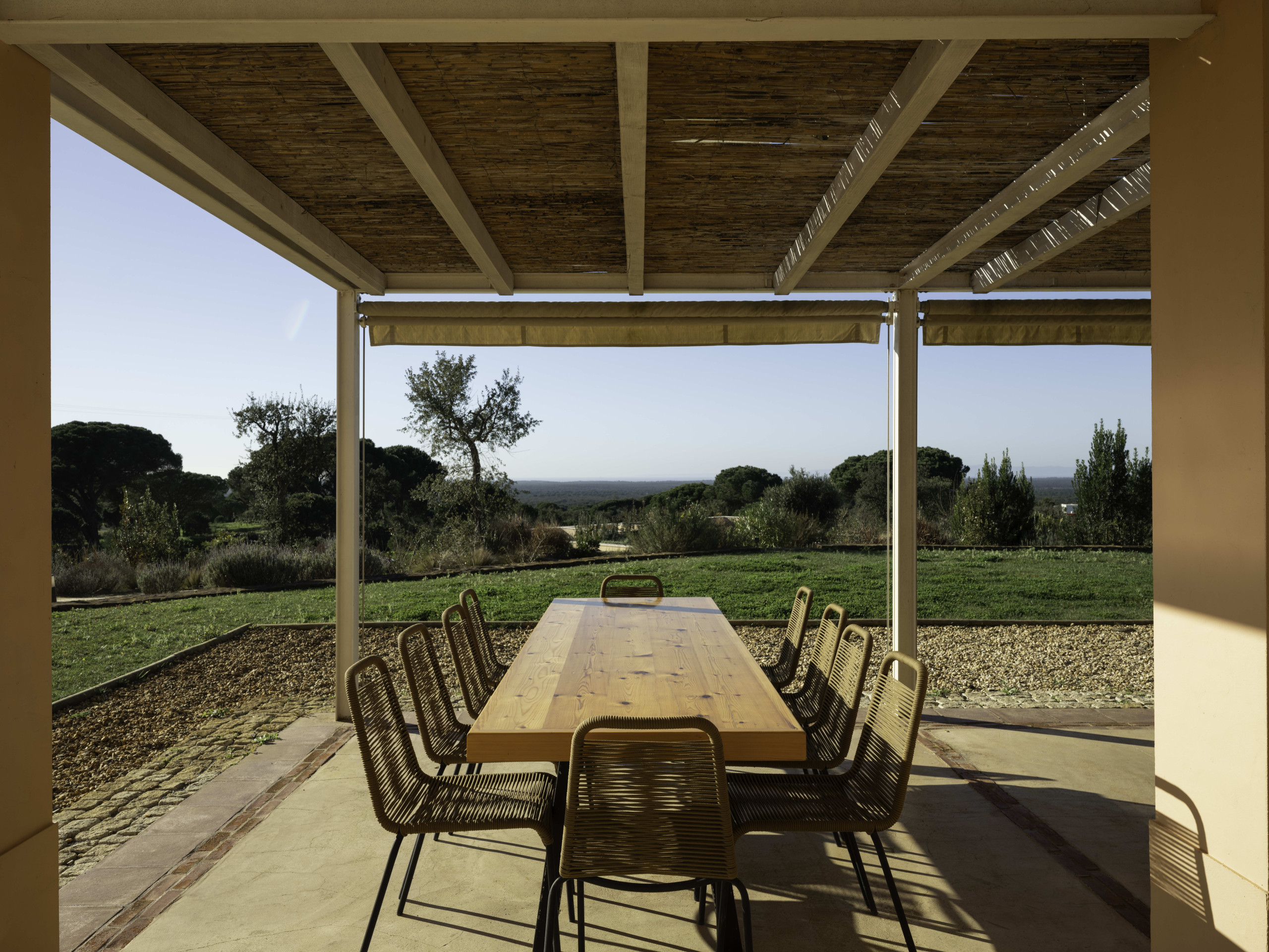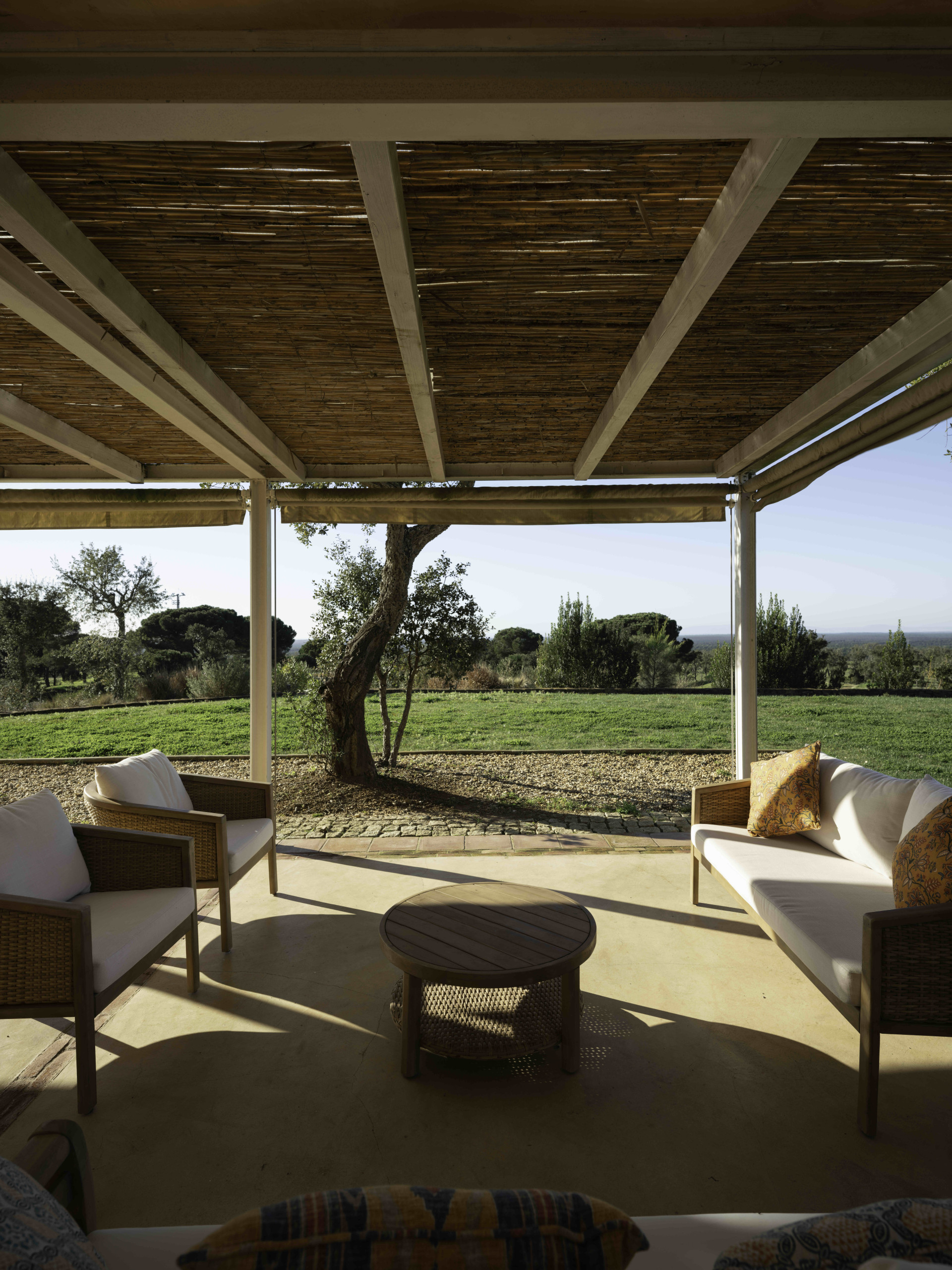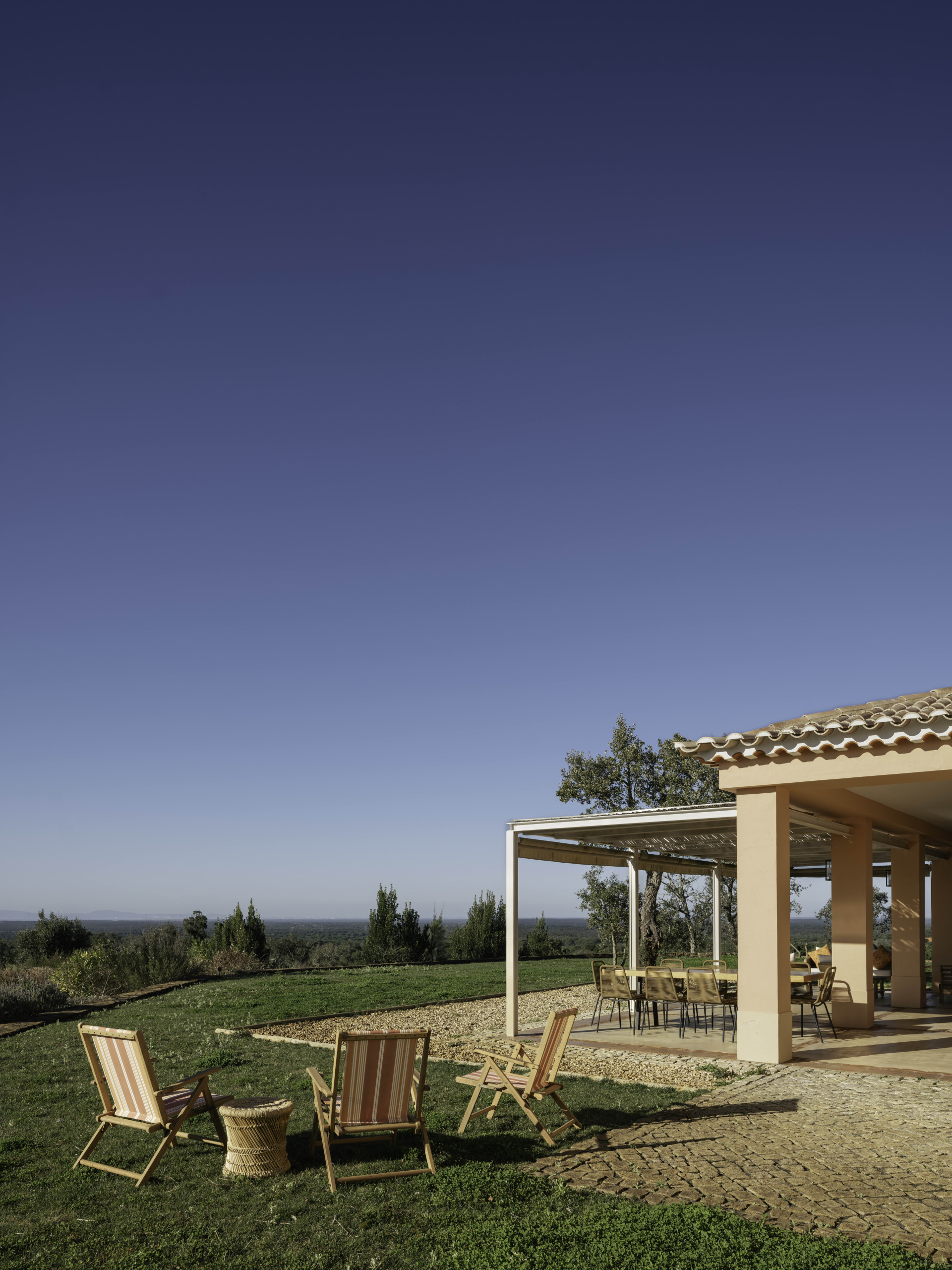Villa Olive is a spacious countryside retreat set in the peaceful landscape near Melides, surrounded by rolling fields, cork oaks and olive trees. Set on a private 19-acre estate, the villa offers complete privacy and wide open views across the Alentejo countryside while still being within easy reach of Melides village and the nearby beaches.