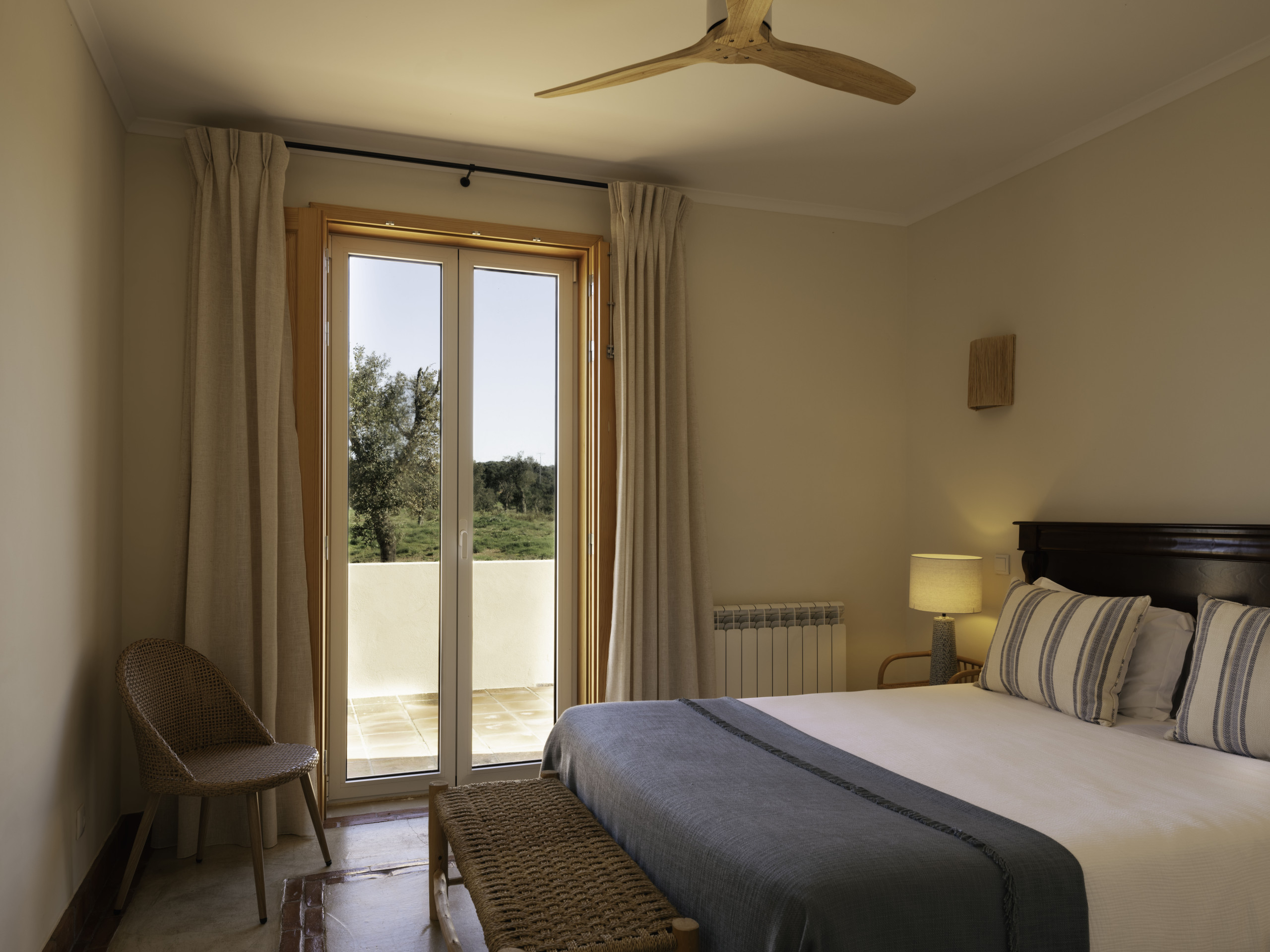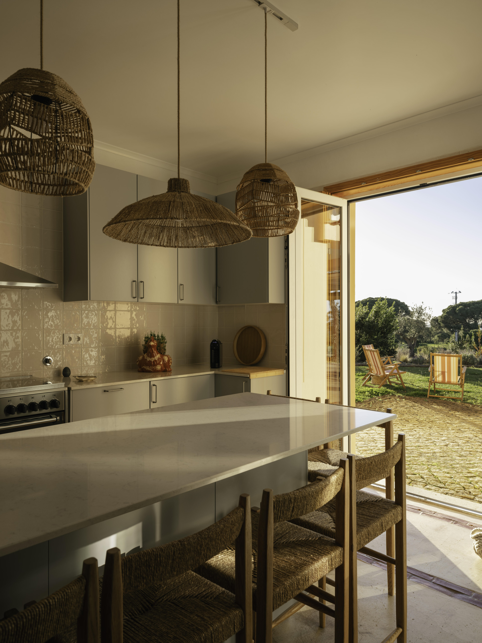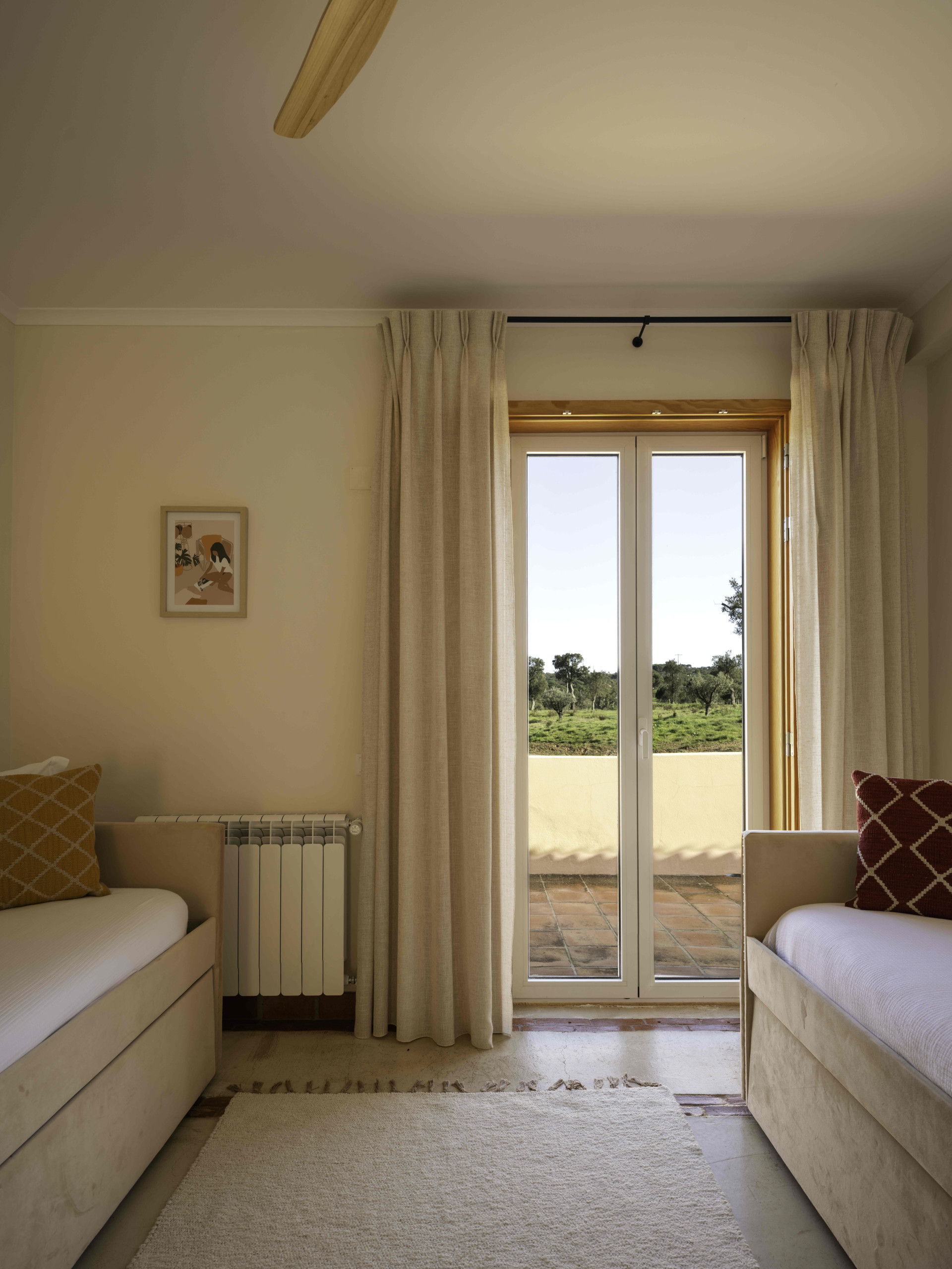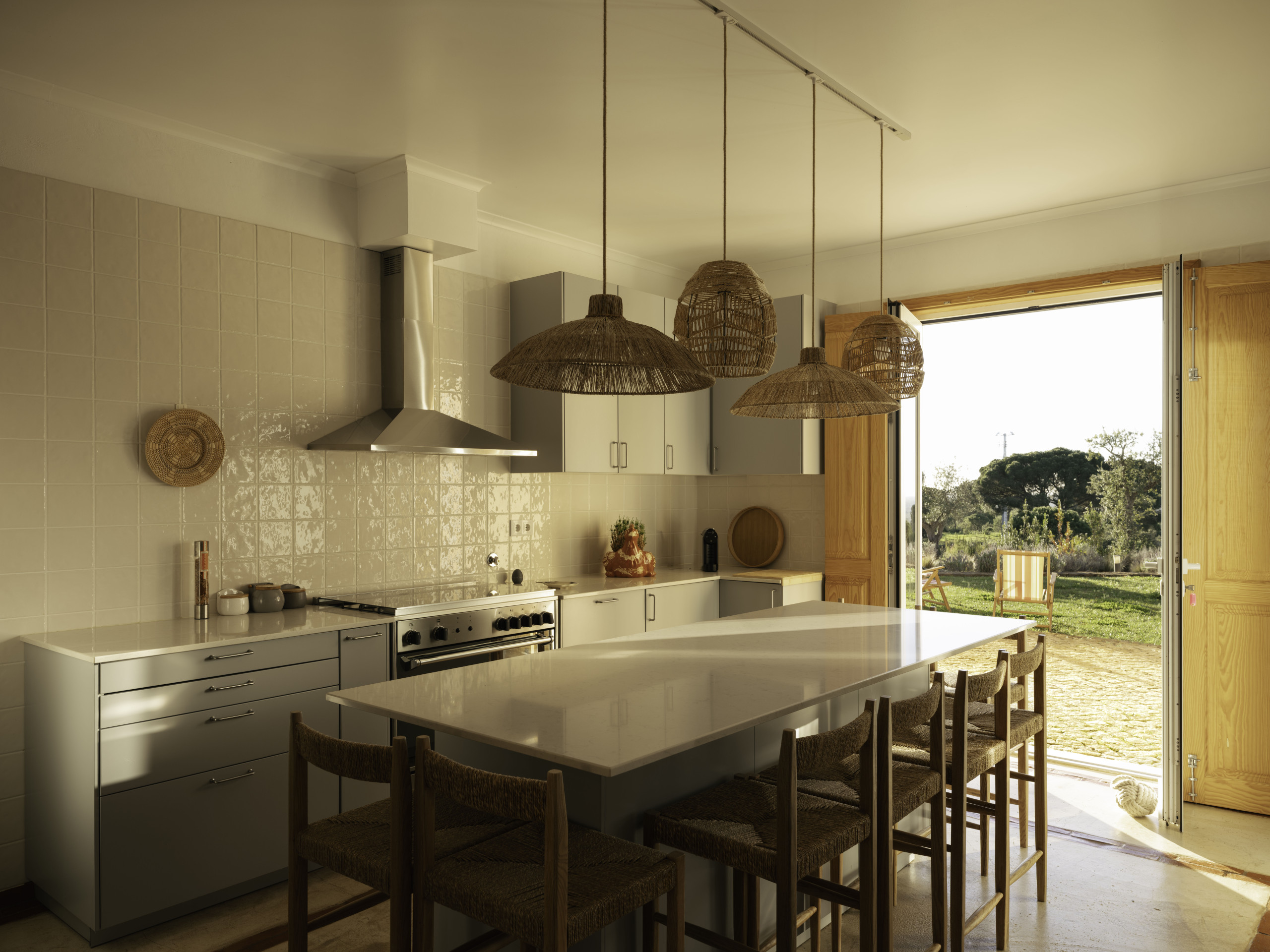 Villa Olive is a spacious countryside retreat set in the peaceful landscape near Melides, surrounded by rolling fields, cork oaks and olive trees. Set on a private 19-acre estate, the villa offers complete privacy and wide open views across the Alentejo countryside while still being within easy reach of Melides village and the nearby beaches.